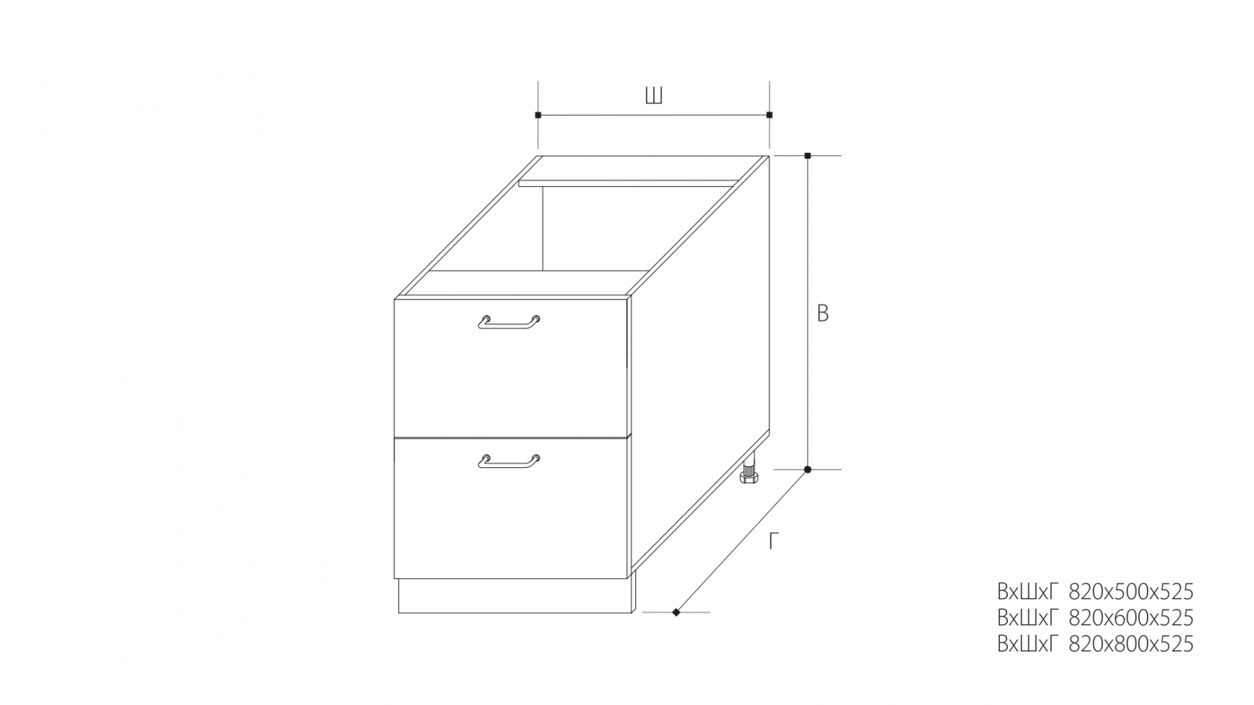 ВхШхГ: 820х500х525 мм.